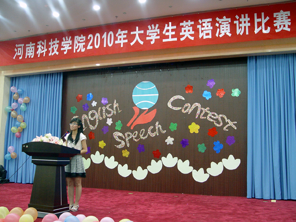 由教务处、校团委、外语系联合举办的“2010年河南科技学院杯大学生英语演讲比赛”于5月13日、5月14日晚在行政楼报告厅隆重举行,700余名师生观看了比赛。