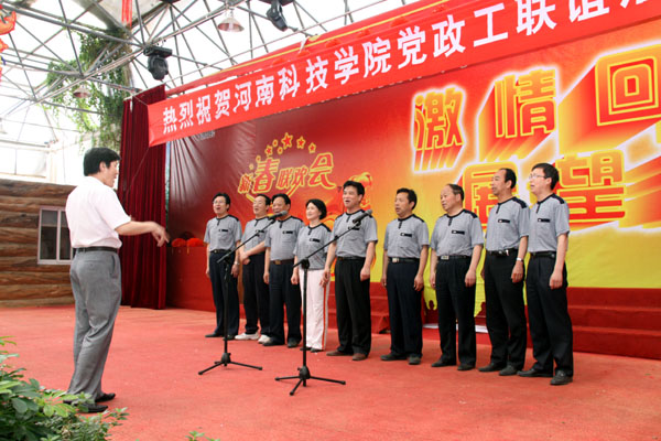联谊会上,校党政领导与大家同欢同乐,一起进行了“欢腾脚步”、“摸石头过河”、“凝聚团队”、“步调一致”等素质拓展活动。校党政全体领导还登台合唱了《团结就是力量》,各分会也积极参与,表演了精彩的文艺节目。