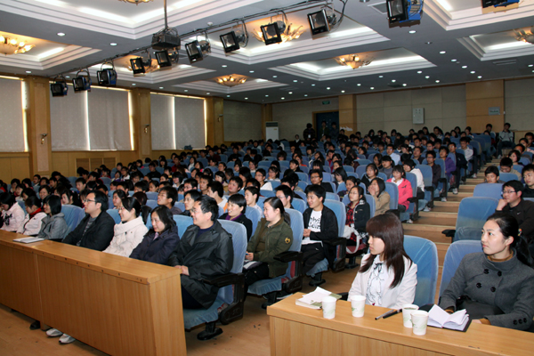 田桂荣老师用朴素的语言讲述了自己12年如一日,自费30万余元,不遗余力开展民间环保活动的动人事迹:多年来,她走街串巷,回收废旧电池60余吨;烈日炎炎下,带领环保志愿者们,徒步开展保护母亲河环保活动;为宣传环保,走进110多所学校,不辞辛苦地义务为同学们宣讲环保知识;创办了全国首家农民环保网站,成立了全国第一个由农民创办的环保志愿者协会,设立河南省第一条民间环保举报热线。她惊人的毅力、执着的信念、乐观的心态以及环保路上的辛酸、困难与成功深深地打动了现场的师生,精彩的报告不时引起全场热烈的掌声。