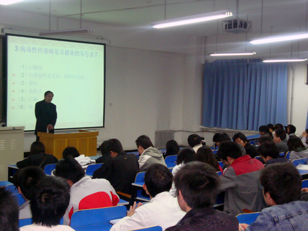 为配合此次学术报告月启动仪式,由动科学院张智勇教授主讲的“当前猪病流行现状与防治对策”讲座在五号教学楼合三教室同时举行。张智勇教授就当前猪病流行的现状进行深刻剖析,给同学们提出了颇有新意的“养猪八字宪法”。