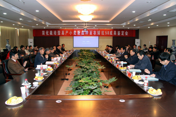 出席会议的鉴定委员会专家组由中国农科院肖世和研究员,四川农业大学原副校长任正隆教授,国家小麦工程技术中心副主任郭天财教授,山东农业大学田纪春教授,西北农林科技大学张改生教授,河南省农科院副院长张新友研究员,河南省农科院小麦中心主任许为钢研究员,周口市农科院原院长郑天存研究员等国家农业领域权威专家组成。河南省科技厅贾跃副厅长、成果处王文瑞处长、农村处王炜副处长,省农业厅科教处魏蒙关处长,我校校长王清连教授、副校长刘兴友教授、科技处王三虎处长、生命科技学院李友勇院长等出席了会议。鉴定会由科技厅成果处胡莎副处长主持。