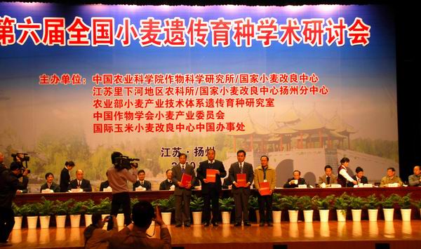 3月28日——31日,第六次全国小麦遗传育种学术研讨会在扬州召开,来自全国各地的600多名小麦科研人员代表参加了会议。会议举行了“庄巧生小麦研究贡献奖”颁奖仪式,对2008年度、2009年度获奖人员进行了表彰。我校茹振钢教授获得了2009年度庄巧生小麦研究贡献奖。中科院院士、著名小麦遗传育种学家、国家最高科学技术奖获得者李振声为茹振钢教授颁奖。