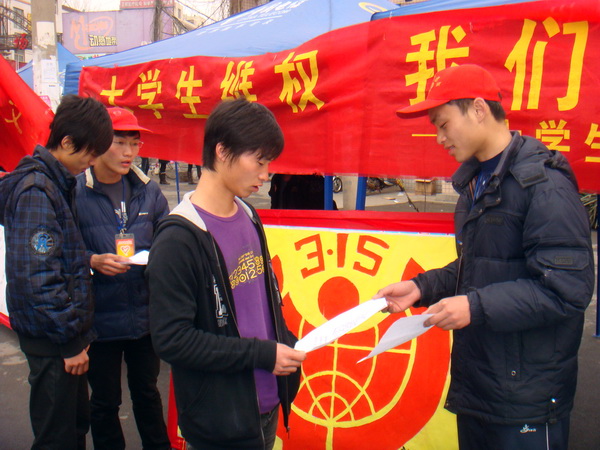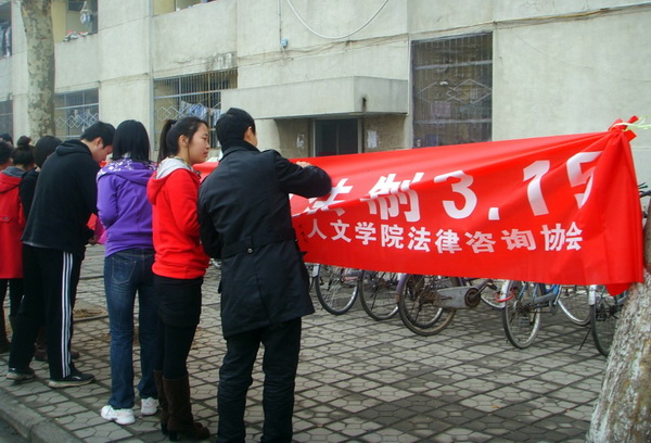 3月15日是消费者权益保护日,我校法律咨询协会和大学生维权协会在校团委和保卫处的支持下,在大学城联合举行了消费者权益保护法律知识宣传和咨询活动。