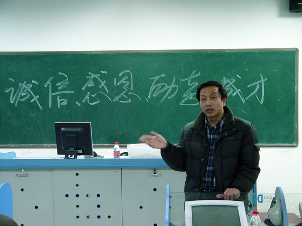 3月11日晚,外语系在7#408语音室举办了“诚信、感恩、立志、成才”报告会。外语系党总支书记孟景舟出席报告会。全体辅导员、09年度奖助学金获得者以及助学贷款学生100余人参加了报告会。