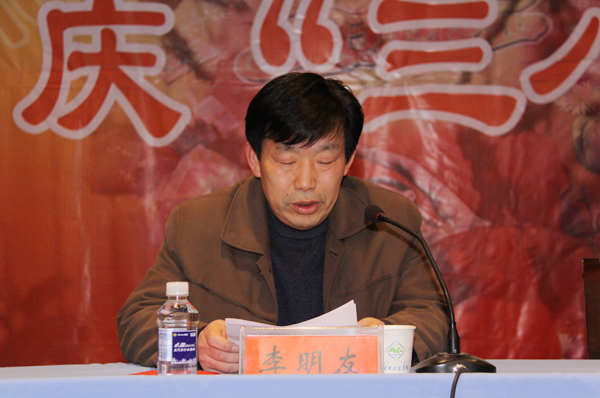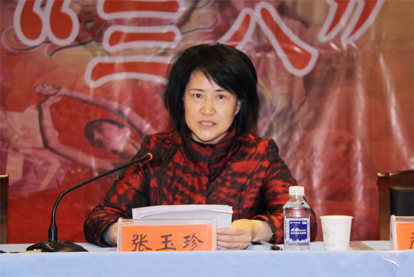 最后,党委副书记、工会主席张玉珍做了重要讲话:首先,她代表校党委、校行政向全校女教职工、女大学生及离退休女同志,致以亲切问候和节日祝福!向大会上受表彰的单位和个人,表示热烈的祝贺和诚挚的敬意!她充分肯定了女教工的半边天作用。广大女教职工在学校的教学、科研、管理中的起着举足轻重的作用,已经成为推动学校建设“教学研究型大学”不可替代的重要力量。2010年是“十一五”发展规划的最后一年,也是学校推进教学研究型大学建设的关键一年,她希望广大女职工要认清形势,转变观念,增强主人翁意识,凝聚智慧和力量,积极投身于学校的各项工作中去,继续发挥“半边天”作用。全校女教职工要立足岗位,不断自我磨练,自我加压,继续提高自身综合素质,积极投身到学校改革与建设发展事业中来。要树立与时代发展相适应的新观念,把学习作为人生的目标和追求,以学习丰富人生,以学习促进工作,以学习赢得成功。希望全校女同志进一步发扬“自尊、自信、自立、自强”精神,女教工要发挥自身优势,身体力行,更好地履行教书育人、管理育人、服务育人的职责,努力成为新时期知识女性的楷模,承担起时代所赋予的光荣使命。希望女性领导干部,要努力摆脱依附心理和“性别意识”的牵绊,树立自立自强观念,培养坚强的心理素质,在提高女性的魅力和智慧的同时,学习男性的意志和魄力,不讲任何特殊,只要在其位,就必须谋其政、胜其任。希望每一位女同志在做好工作的前提下,还要具有角色意识并能及时转变角色,处理好工作和生活的关系。在工作中发挥好模范和骨干作用,在家庭做一个好女儿、好儿媳,好妻子,好母亲。