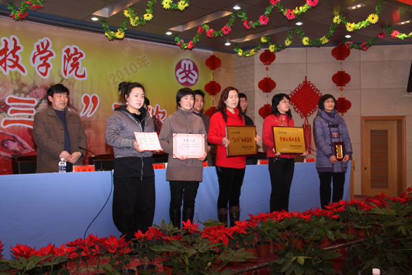 校工会副主席李明友同志首先宣读了《河南科技学院关于表彰2009年度女职工先进集体和个人的决定》,在欢快的交响乐声中,校党政领导亲自为获奖集体和个人代表颁发了奖牌和证书。