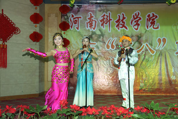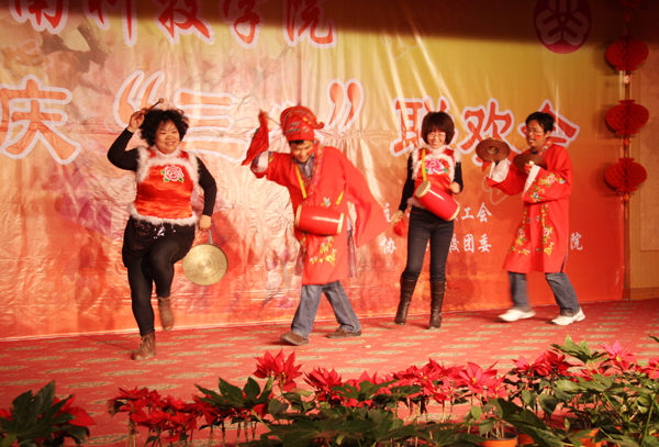 为庆祝第100个“三八”国际劳动妇女节,3月7日下午,我校庆“三八”节暨表彰大会在图书馆二楼报告厅隆重召开。校党委书记严全治同志、副书记、工会主席张玉珍同志、副书记郭海波同志出席了会议,参加会议的还有各院系、有关职能部门负责人、全校女教职工代表等300余人,会后领导和同志们兴致勃勃的一起观看了文艺演出。