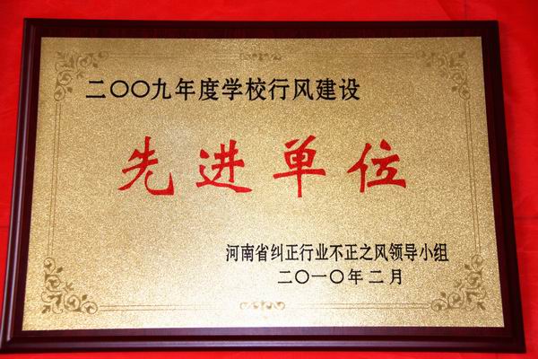 我校荣获“河南省2009年度学校行风建设先进单位”称号