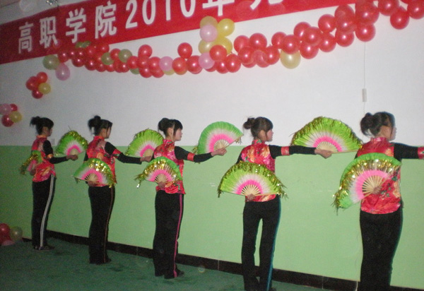 元旦将至,为迎接崭新的2010年,高职学院全体师生精心筹备,举办了三场晚会庆佳节。其中,28日晚该院举行了红歌晚会,各系学生高唱红歌、校歌迎新年;29日晚举行歌舞晚会,同学们高亢的歌喉唱出了优美的旋律,亮丽的舞姿组成一幅幅动人的青春风景线;30日晚举行相声、小品等语言类晚会。晚会在电教楼报告厅举行,多场晚会展示了广大高职学子的良好精神风貌和迎接2010年新年到来的喜悦之情。(高职学院)