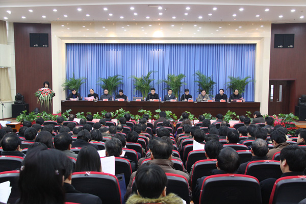 16时50分,“双代会”预备会议第一阶段会议开始。校党委副书记、校工会主席张玉珍受“双代会”筹备工作领导小组的委托,作大会筹备工作报告。报告中,张玉珍同志就“双代会”筹备工作基本情况作了介绍:本次“双代会”筹备工作始终坚持校党委领导的原则,坚持民主集中制原则,坚持程序化和规范化原则,在全校各分会共同努力和全校教职工关心支持下,经过大会筹备工作领导小组和筹备工作办公室全体同志紧张有序的工作,已准备就绪。一是成立了筹备工作领导小组及各专项工作组;二是按规定程序选出了“双代会”代表;三是确定了会议议题;四是拟订、提出了各类建议名单;五是完成了有关报告、文件和相关文字材料的起草工作;六是完成了征集和整理提案工作;七是制定了宣传工作方案并认真实施。张玉珍同志代表筹备工作领导小组和校工会向为筹备工作付出辛勤劳动的同志们表示崇高的敬意和衷心地感谢,相信新一届工会委员会将在校党委的领导下,团结全校广大教职工,充分发挥工会、教代会在学校改革发展中的作用,发扬民主、群策群力,为早日实现教学研究型大学做出新的更大的贡献。
