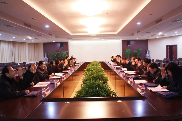 17时30分,预备会议休会15分钟,主席团成员在行政楼2楼综合会议室召开主席团第一次会议,通过了大会执行主席分组名单、提案审查报告、校第七届工会委员会委员预选候选人建议名单、校第七届工会经费审查委员会委员候选人建议名单、教代会四个专门委员会组成人员候选人建议名单以及大会议程、日程,大会选举办法,大会总监票人、监票人建议名单,指定总计票人、计票人名单,大会列席代表名单等。