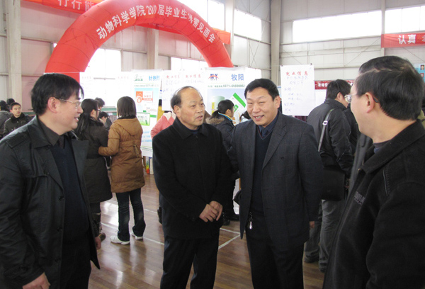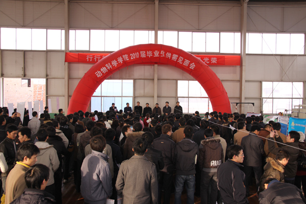 12月12日,动物科学学院在校综合训练馆举办2010届毕业生供需见面会,动科学院联点校领导、校纪委书记张民校出席了供需见面会开幕式,校招生就业处处长陈红卫、学生处处长何雅璞、校团委副书记郭立等职能部门及院系领导参加供需见面会开幕式,副校长窦玉玺亲临现场指导工作。