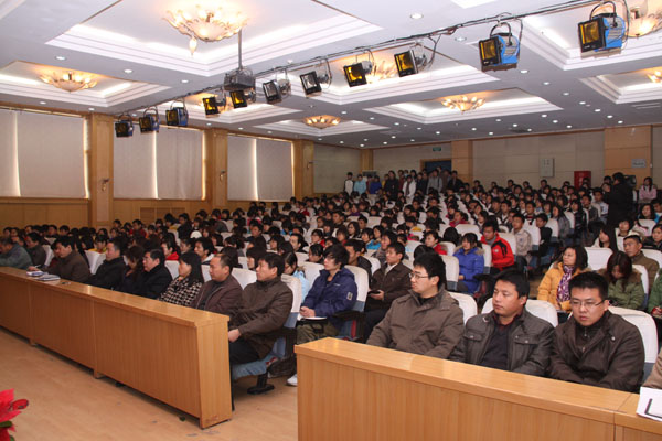 11月27日上午,我校党校第一期党员发展对象培训班开学典礼在图书馆二楼报告厅隆重举行。校党委副书记、党校校长、校工会主席张玉珍出席典礼,党委办公室主任陈自录、党委宣传部部长姚刚、纪委副书记杨清河、组织部副部长余鹏及各院系党总支副书记、辅导员,部分党校教师和300余名学员代表参加典礼。