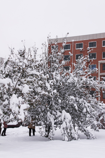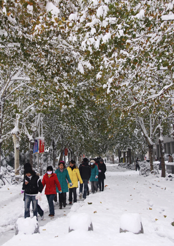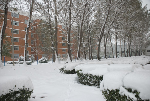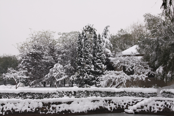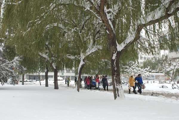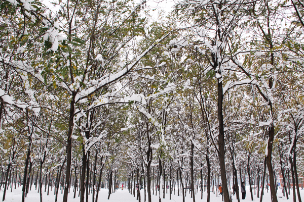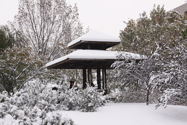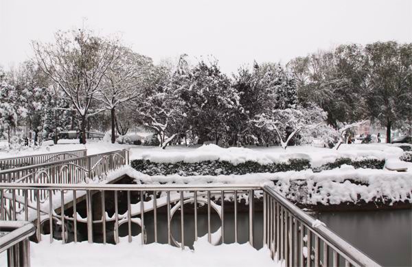 ,入冬的第一场雪使可爱的校园变成了雪的海洋,那美不胜收的景色也仿佛使我