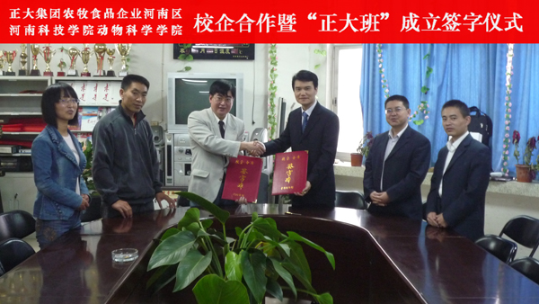 11月9日,动物科学学院与正大集团校企联合签字仪式在动科学院会议室举行。动物科学学院党总支副书记徐兆栋、分团委书记李军民、辅导员李雪华,正大集团河南区人力资源中心总监陈义力、开封正大人力资源部经理李兴赣、洛阳东方正大人力资源部经理杨隽等参加签字仪式。