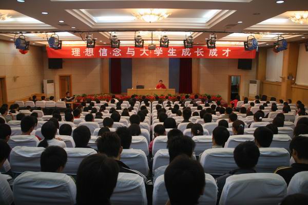 报告会上,郭海波副书记用朴实的语言深刻地诠释了人生哲理。他围绕大学生应该如何更好地适应大学生活、树立人生理想信念这一主题,从生命的意义、国家对个人的意义、处理人际关系的技巧及大学生对恋爱的态度等四个方面作了深入浅出地阐述。郭海波副书记对同学们寄予厚望,并提出了希望和要求:一要珍惜自己的生命;二要提高对党和国家的认识,要有国家荣誉感;三要牢记处理人际关系的准则——“一荣一耻”,即以不给别人造成麻烦为荣,以给别人带来不便为耻;四要正确认识和处理恋爱问题。他希望同学们能脚踏实地、珍惜时间、刻苦钻研,用辛勤和汗水谱写人生新的华章!