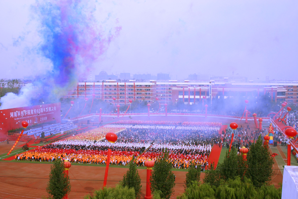 鲜花绽放,彩旗飘扬。60门礼炮隆隆作响,600对和平鸽展翅高翔——10月18日上午,河南科技学院隆重举行建校60周年庆典。