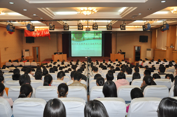 刘士林教授从“城市”这一概念意象谈起,以长江三角洲城市群的南京、苏州、扬州、杭州等城市为例,从文化史与社会学的角度,对现代作家笔下的江南城市现代化进程作了详尽、精彩的阐述。本次学术报告开阔了我校师生的应用文科理念及文化研究视野,深化了师生对人文学科的认识。(人文学院)