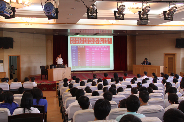 会后,任正隆教授立即开展工作,他首先与生命科技学院党政班子进行了座谈,就大学生素质培养、青年教师队伍建设、博士点建设、社会服务等方面给予了深入浅出的论证和有效的经验方法指导。下午,任教授在图书馆二楼报告厅为该院师生作了题为“小麦外源染色体易位系创制的分子生物学和利用”的学术报告,并回答了师生提出的问题,他还参观了学校的教学科研平台、校小麦育种中心和生命科技学院实验室。