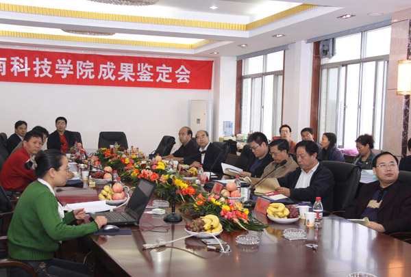 9月19日,受河南省科技厅委托,河南省教育厅组织有关专家对我校十九项科技成果进行了会议鉴定。成果鉴定会分别在校电教综合楼八楼第一、第二会议室和信工学院会议室召开。省科技厅成果处王文瑞处长、省教育厅科研外事处科长魏涛出席会议,以河南师范大学副校长徐存栓教授、河南农业大学杨秋生教授、河南省农科院邓瑞广研究员、河南机电专科学校张煜教授为组长的四个专家组及我校科技处、生命科技学院、园林学院、动物科学学院、机电学院相关人员参加鉴定会。会议由教育厅科研外事处魏涛主持。