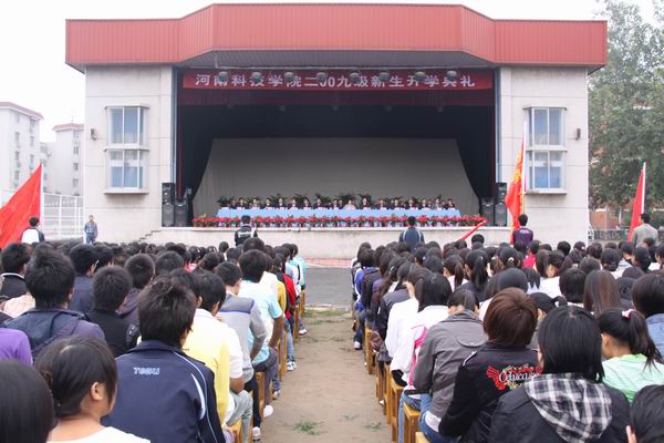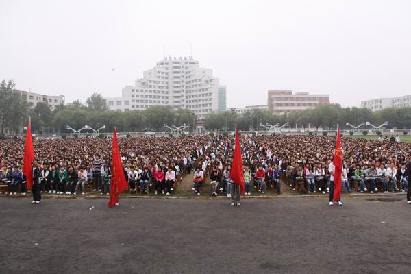 金风送爽,鲜花吐艳。9月14日上午,我校2009级新生开学典礼在西操场隆重举行。校党政领导王清连、张玉珍、郭海波、梁赖、张民校、郭海山、刘兴友、刘荣增、冯启高、王舜书、宋亚伟出席典礼。各相关职能部门和各院系的党政负责人及2009级6500余名新同学参加了开学典礼。