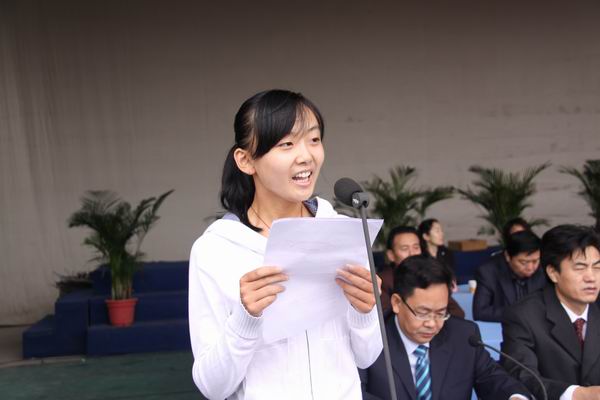 会上,外语系主任赵颖博士代表全校教工发言,希望新同学们在新的环境中,明确方向、把握自己、刻苦学习、全面成才。艺术学院宁雅同学代表高年级同学向新同学表示欢迎。新生代表、人文学院王丽洋同学代表全体新生做了发言,表示决不辜负学校的希望,一定会珍惜时间、磨砺自己、学好本领、奉献祖国,为学校增添光彩。