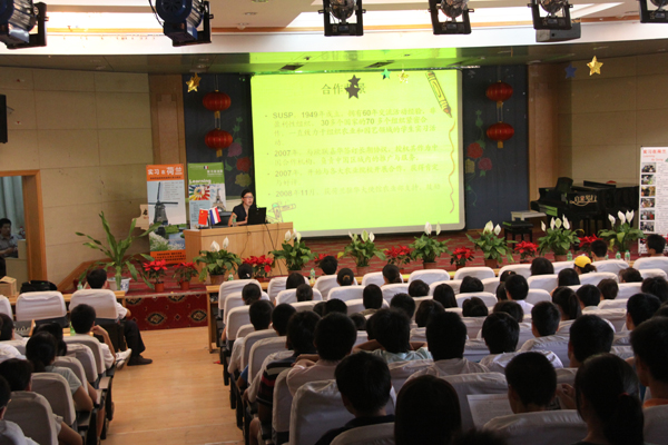 应国际交流处邀请,6月5日下午,荷兰SUSP农业学生交换及学习访问基金中国总代理杨巍华女士一行4人来我校洽谈合作事宜,并在图书馆二楼报告厅作了一场关于农林专业在校生赴荷兰带薪实习项目的专场报告会,报告会由国际交流处处长赵瑞香教授主持,我校农学、动科、食品、园艺等专业200余名在校生到会聆听了报告。