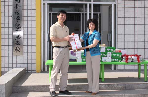 6月1日上午,校领导张玉珍、郭海波、梁赖、窦玉玺、郭海山在校工会、财务处、离退处、后勤管理处等部门负责人的陪同下到子弟小学进行节日慰问。