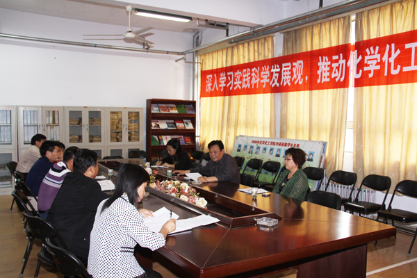 按照我校学习实践活动分析检查阶段工作的部署和要求, 5月22日下午,化学化工学院召开了领导班子专题民主生活会。校工会主席郭海山出席会议,校工会副主席韩香月及化学化工学院教授代表、博士博士代表参加会议。会议由该院党总支书记郭东升主持。