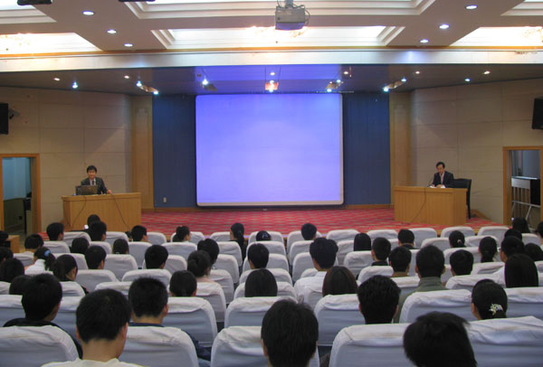11日上午,赵东夏教授在图书馆二楼报告厅做了题为《利用韩国江原道产药用植物开发健康食品》的学术报告,全校师生200余人参加报告会。下午,在食品学院三楼会议室,国际交流处、研究生处、食品学院相关负责人与韩国客人就双方互派研究生、互派优秀本科生、教学科研合作等方面召开了座谈会。报告会和座谈会由食品学院副院长李波博士主持。
