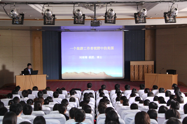 在近两个小时的报告中,刘荣增教授从一位旅游工作者的独特身份和视角,结合自己在美国访学、生活和旅游的亲身经历,从吃、住、行、游、购、娱等方面阐述了美国旅游的特点、中美旅游观念的差异、美国旅游资源的保护和发展等问题,总结了美国旅游文化产业发展的经验。刘校长还联系河南省旅游产业发展的实际,提出河南省应大力开发文化旅游资源,做大做强旅游文化产业,为实现中原崛起提供有力支撑。刘校长的报告生动形象,详实有据,展现了他渊博的学识和睿智的人格魅力,使聆听报告的食品学院师生受益良多。此次报告会对大家今后的学习、研究具有积极的指导意义。(食品学院 宋军令)
