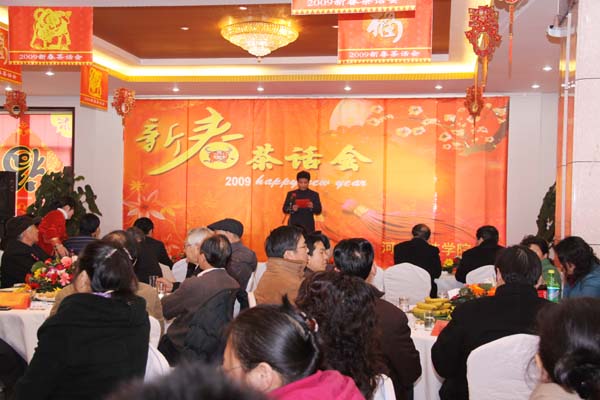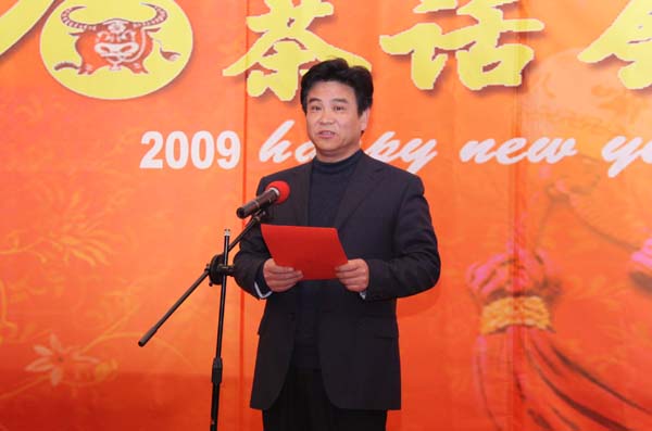 银鼠报喜辞旧岁,金牛纳福迎春来。1月16日下午,我校2009新春茶话会在学术交流中心二楼大厅隆重举行。校党政领导严全治、王清连、张玉珍、郭海波、梁赖、王文鹏、窦玉玺、刘荣增、张民校、郭海山出席茶话会。各单位党政负责人,在职教授、博士代表,民主党派、无党派人士代表,离退休职工代表,工人代表,2008年国家级项目负责人、省级以上科研成果获得者及获得省部级以上荣誉称号人员等120余人参加茶话会。
