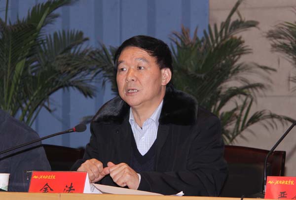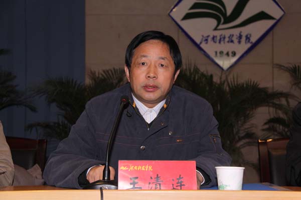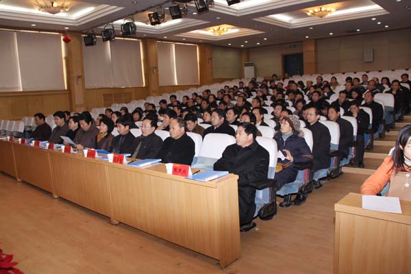 1月7日下午,我校在图书馆二楼报告厅召开了2008年度校级领导干部述职述廉大会。以河南省委高校工委专职委员金法同志为考察组组长的一行5人出席会议。会议由校党委副书记、校长王清连主持。