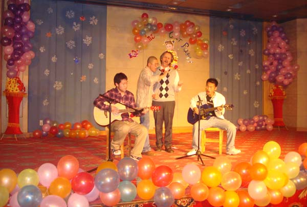 晚会现场灯火璀璨、歌声飞扬、座无虚席。五彩的气球和炫丽华灯将舞台装扮得靓丽多姿。晚会在一段活力四射的街舞中拉开帷幕,舞蹈女孩用青春点燃了冬日激情。小品《同桌的你》带领大家回到自己的青涩、纯真的少年时代。外教Jeffery和Norma为大家表演了英语绕口令,Jeffery更是以一曲美妙的乡村小曲打动了全场观众……。深情的中、日、英歌曲大联唱,幽默风趣的相声小品,令人忍俊不禁的搞怪舞蹈,动人心弦的手语表演,慷慨激昂的英文诗朗诵等使现场气氛高潮迭起,掌声不断。最后,小合唱《相亲相爱的一家人》唱出了外语系的团结与友爱,向大家送去了新春的祝福,晚会也圆满落下帷幕。(外语系 赵茜)
