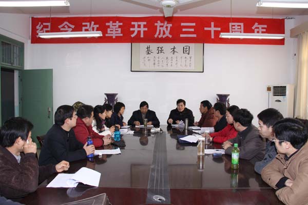 12月26日上午,经济与管理学院在该院会议室举办了 “学习胡锦涛讲话,纪念改革开放30周年经济与社会发展成就及经验”座谈会。该院党政负责人及部分教师30余人参加座谈会。座谈会由该院党总支书记旦勇刚主持。