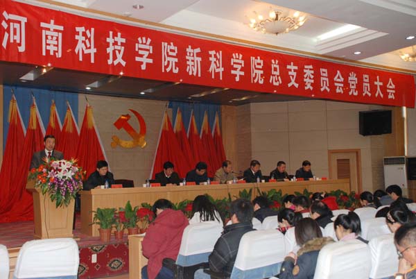 12月21日下午,中共河南科技学院新科学院总支委员会党员大会在图书馆二楼报告厅召开,本次大会的主要议程是听取和审议中共河南科技学院新科学院总支委员会工作报告、选举新一届新科学院总支委员会委员。校党委书记严全治应邀出席会议,党办主任陈自录、党委组织部部长曹国杰、新科学院全体教工党员和学生党员代表参加此次会议,会议由新科学院院长梅宪宾主持。