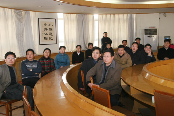 我校党政领导严全治、王清连、张玉珍、郭海波、梁赖、王文鹏、刘兴友、窦玉玺、刘荣增、张民校、郭海山在电教综合楼第二会议室认真收看了纪念大会实况。