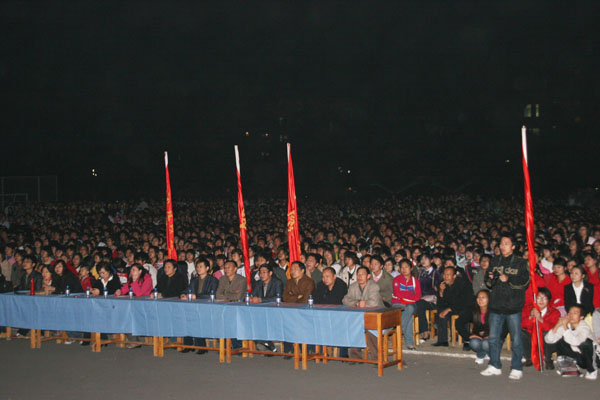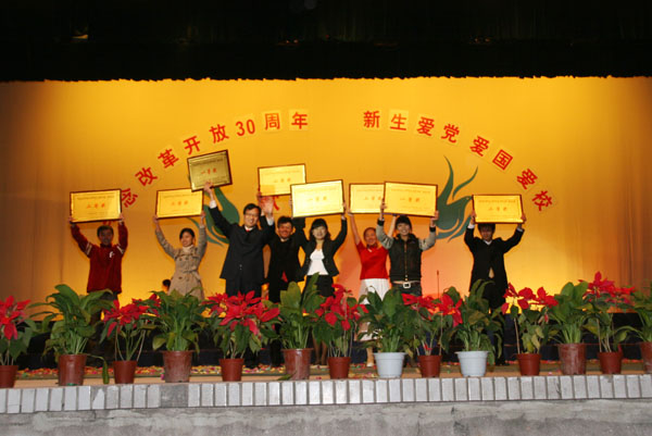 为纪念改革开放30周年,激发广大学生爱党爱国爱校热情,党委宣传部、党委学工部、校团委于10月25日晚7:00在西操场大舞台隆重举行了“纪念改革开放30周年爱党爱国爱校”歌咏比赛。校党委宣传部、学工部、校团委相关负责人,部分党总支副书记,辅导员及我校师生8000余人观看了此次比赛。