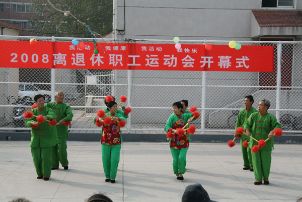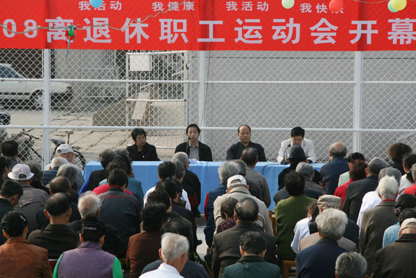 10月10日至24日,我校举办了2008年离退休职工运动会。运动会于10日上午在校西区操场开幕。副校长窦玉玺出席了开幕式,并作了热情洋溢的致辞,我校离退休老同志活动团队进行了空竹、太极拳、健身操、模特等精彩的文体表演。