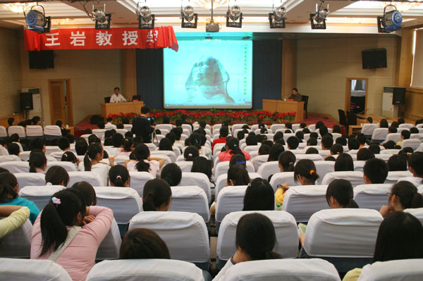 报告会上,王岩教授从哲理寓意深刻的古希腊神话讲起,联系哲学史上思想巨擘对“人”之为人的多维反思,从“人”之为人的形上追问、“人”之存在与社会发展的时代主题、当代社会发展与人之生存的困惑、追求人类的精神家园四个方面,对“斯芬克斯”之谜所引发的哲学智慧作了现代诠释。王教授的报告为青年学生追求“人”之存在的最佳方式,明晰自己的权利、义务、责任并以人本、和谐、创新等现代理念共建人类精神家园提供了思想启引。