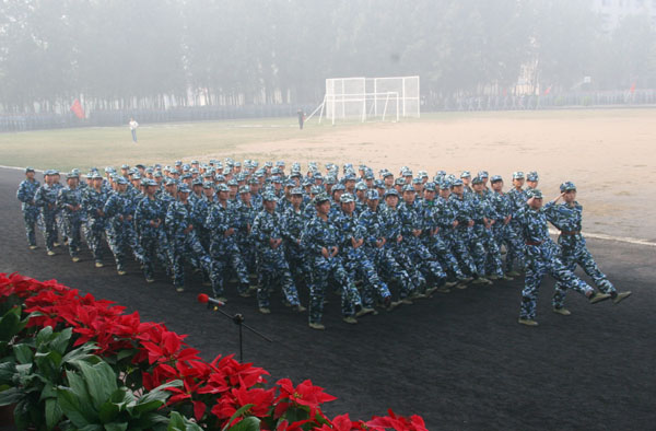 机电学院08级新生白杨代表全体参训同学发言,他表示要牢记领导、老师、教官的嘱托和教诲,努力学习,全面掌握报效祖国的本领,为祖国贡献出青春和力量。