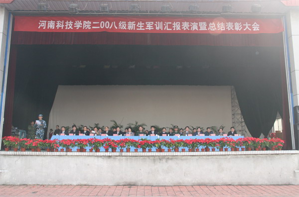 会上,党委副书记张玉珍宣布了在2008级军训中涌现出的军事训练评比先进单位、内务卫生先进单位。学校领导向先进单位颁发了奖状。
