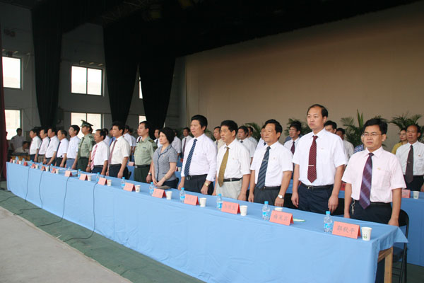开学典礼暨军训动员大会在雄壮的国歌和激越的校歌声中隆重开幕。