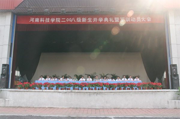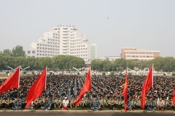 9月17日上午,我校2008级新生开学典礼暨军训动员大会在西操场隆重举行,校党政领导严全治、王清连、张玉珍、郭海波、梁赖、窦玉玺、张民校、郭海山及中国人民解放军71697部队副政委谢天平、71697部队带队教官王全伟等出席典礼,有关职能部门和院系负责人及2008级新生共6800余人参加开学典礼。开学典礼由校长办公室主任陈自录主持。
