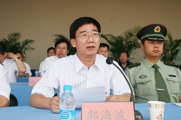 校党委副书记郭海波作军训动员讲话,他代表学校党委、行政及全校师生向帮训部队全体指战员表示热烈欢迎和衷心感谢,并对此次军训提出了希望和要求:一、各院(系)和有关职能部门领导要站在时代的高度,充分认识军训工作的重要性,做到思想统一、标准统一、行动统一;二、参加军训的同学们要虚心向解放军学习,牢固树立社会主义荣辱观,严格要求自己,做到服从命令、听从指挥、刻苦训练、令行禁止;三、参加军训工作的各院(系)辅导员,要以身作则,与教官密切配合,充分发挥政治工作的优势,调动同学们的参训积极性;四、希望帮训教官大胆管理,严格要求,严格训练,把人民军队的好传统、好作风、好本领带进我们的校园。他最后希望全体参训学生迎难而上、努力拼搏,圆满完成这次光荣而艰巨的军训任务。