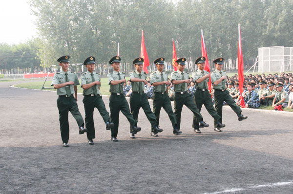 最后,在热烈的掌声中,71697部队的军训教官进行了队列示范表演。(宣传部 )