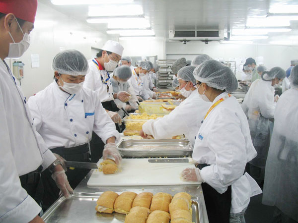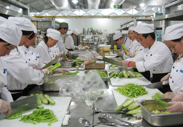 奥运会期间,同学们被分别安排在沙拉、地中海风味、亚洲风味、风味餐厅等部门、每天分为四个班次工作。大家无论在什么岗位,什么时段都能够勤奋工作,认真完成各项任务。由于同学们多为高年级学生,理论知识和操作技能扎实,除了能够主动协助外国厨师长工作、承担部门翻译工作外,还帮助指导其他学生开展工作,因此多次受到奥运合作商爱玛客公司方面的肯定。服务期间,近20人得到奥运门票及其他物质奖励,有多名学生担任部门领班,崔震昆老师在奥运村工作表现突出,爱玛客公司特地要求其留下,担任沙拉班组厨师长,继续完成残奥会服务工作。