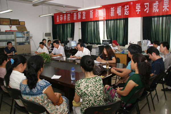资环学院党总支党员干部和教师结合自己的工作实际,从不同侧面和角度,交流了继续解放思想的重要意义、继续解放思想的内容和要求,并就如何巩固学生专业思想、提高专业理论水平和实践能力进行了学习交流。