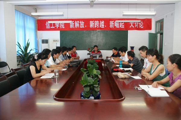 从7月31日至8月2日,各党总支组织所属党员干部,结合实际,以集中学习、座谈讨论为主要形式,重点学习了省委八届八次全会精神传达提纲,省委书记徐光春在省委八届八次全体会议上的重要讲话精神,省高校工委书记、教育厅厅长蒋笃运在全省教育系统“新解放、新跨越、新崛起"大讨论活动动员大会上的讲话,校党委书记严全治在校 “新解放、新跨越、新崛起”大讨论动员大会所作的《思想大解放,实现新跨越,为开创学校又好又快发展新局面而努力奋斗》的动员讲话。重点围绕“如何正确认识开展“新解放、新跨越、新崛起” 大讨论活动的重要性和必要性?”“如何正确理解和准确把握科学发展观的科学内涵、精神实质和基本要求,进一步增强贯彻科学观的自觉性和坚定性?”“如何做好教评整改工作,进一步提高教育教学质量?”“如何进一步提升学校科研水平,提高社会服务能力?”“如何正确认识高等教育面临的新形势、新任务和新要求?如何抢抓机遇,实现学校跨越式发展?”等问题,进行了认真的讨论。