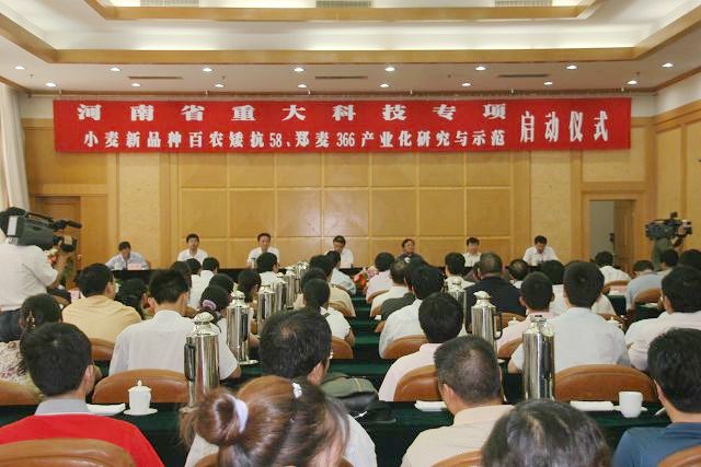 为推动我省小麦生产新一轮品种更换,加速我省小麦产业升级,省科技厅部署设立了“小麦新品种产业化研究与开发”重大科技专项。经过初步遴选、考察评价、量化评分等评审程序,并经由中国工程院程顺和院士为组长、共七名专家组成的鉴定专家组的一致论证,确定“百农矮抗58”、“郑麦366”分别作为高产优质中筋品种、优质高产强筋品种入选专项转业化研究开发品种。